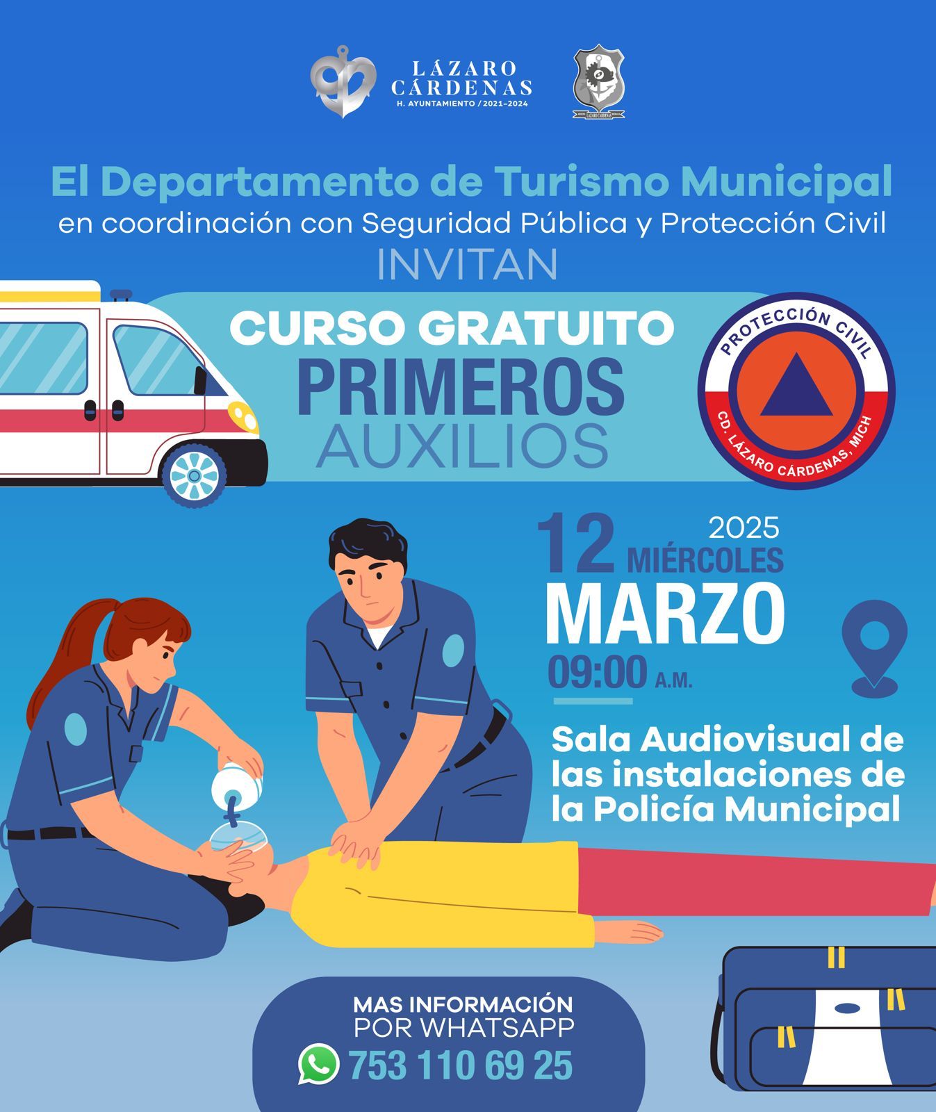 El Gobierno Municipal hace una invitación a la ciudadanía para aprovechar esta oportunidad y adquirir conocimientos que pueden salvar vidas. Para mayores informes, se ha habilitado el número de WhatsApp 753 110 69 25.
