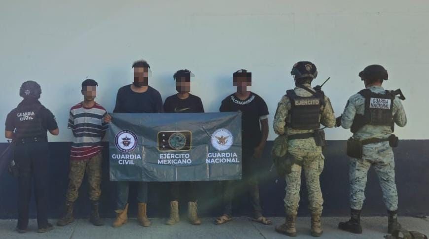 Apatzingán, Michoacán, 12 de marzo de 2025.- Derivado de una acción operativa efectuada en el municipio de Apatzingán, los agentes de las secretarías de Seguridad Pública (SSP) y de la Defensa Nacional (Defensa), detuvieron a cuatro personas del sexo masculino, en posesión de siete armas de fuego, cartuchos útiles y cargadores.