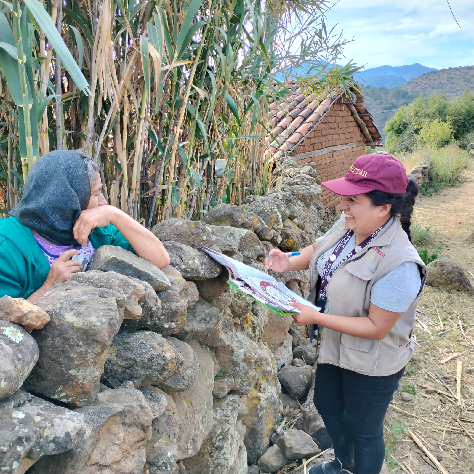 – Servidores de la nación visitan casa por casa a derechohabientes de Pensiones para el Bienestar de Adultos Mayores y Personas con Discapacidad, a fin de realizar un cuestionario de salud