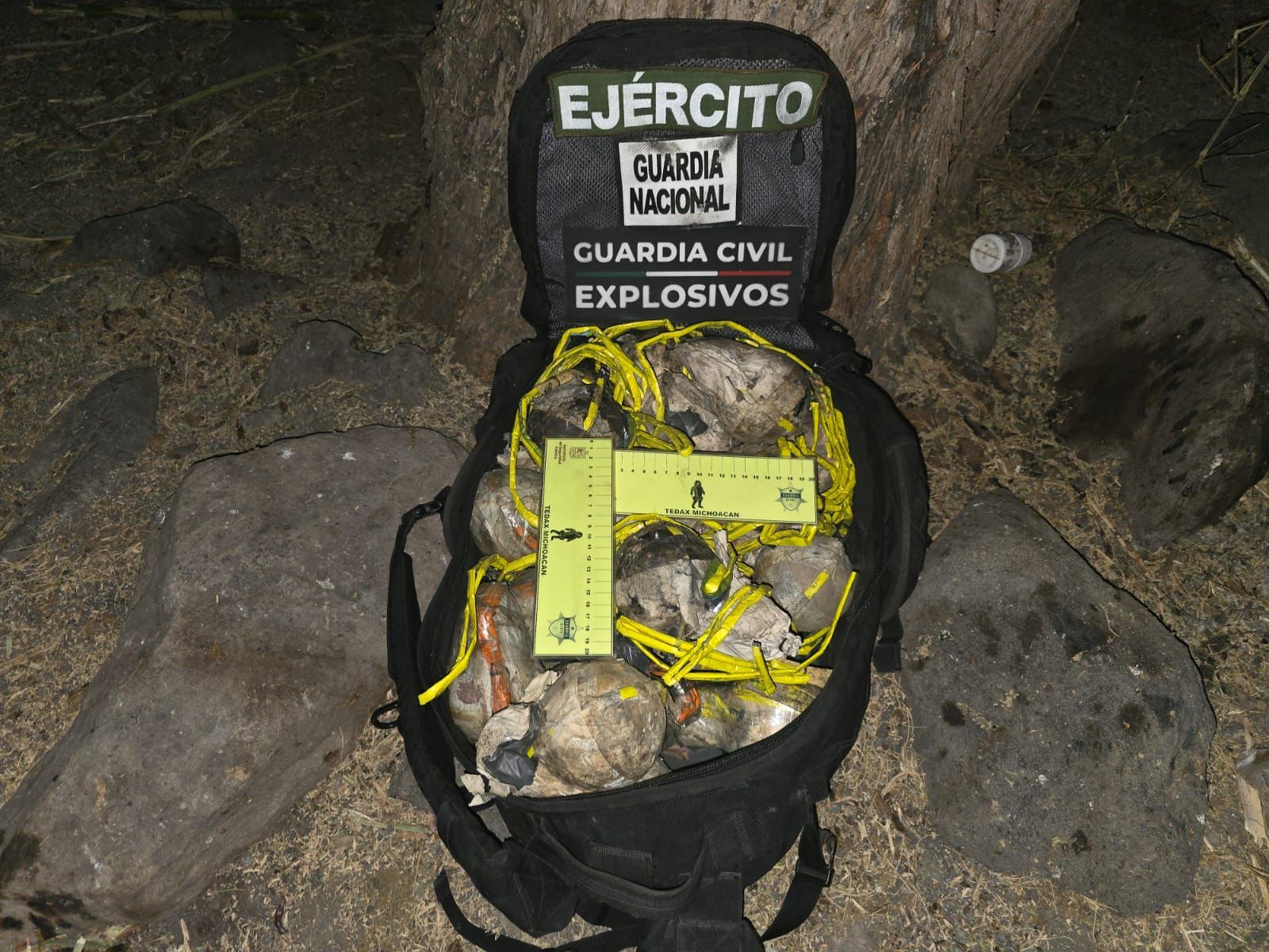 En los trabajos para combatir agresiones con estos artefactos, elementos de la Guardia Civil, Ejército Mexicano y Guardia Nacional, localizaron en la localidad de Paredes del Ahogado los citados explosivos de fabricación casera, los cuales contaban con un peso aproximado de 500 gramos y eran utilizados para ser arrojados desde un mortero improvisado.