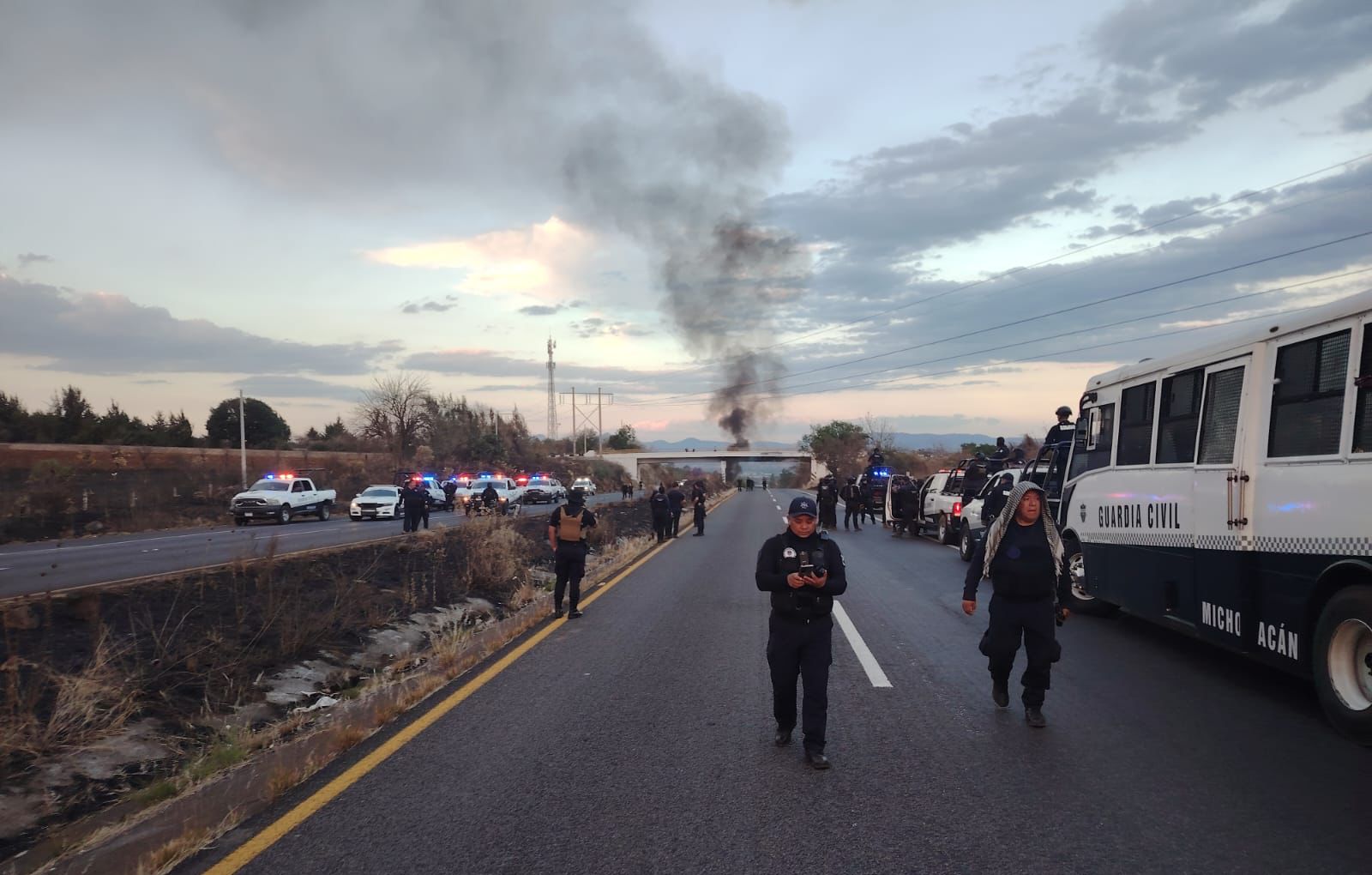 Con la encomienda de salvaguardar el bienestar y el patrimonio de la población, los agentes de la Guardia Civil se desplegaron al kilómetro 24 a la altura de Tiripetío de la citada vía, donde manifestantes cerraron el paso a la circulación en ambos sentidos.