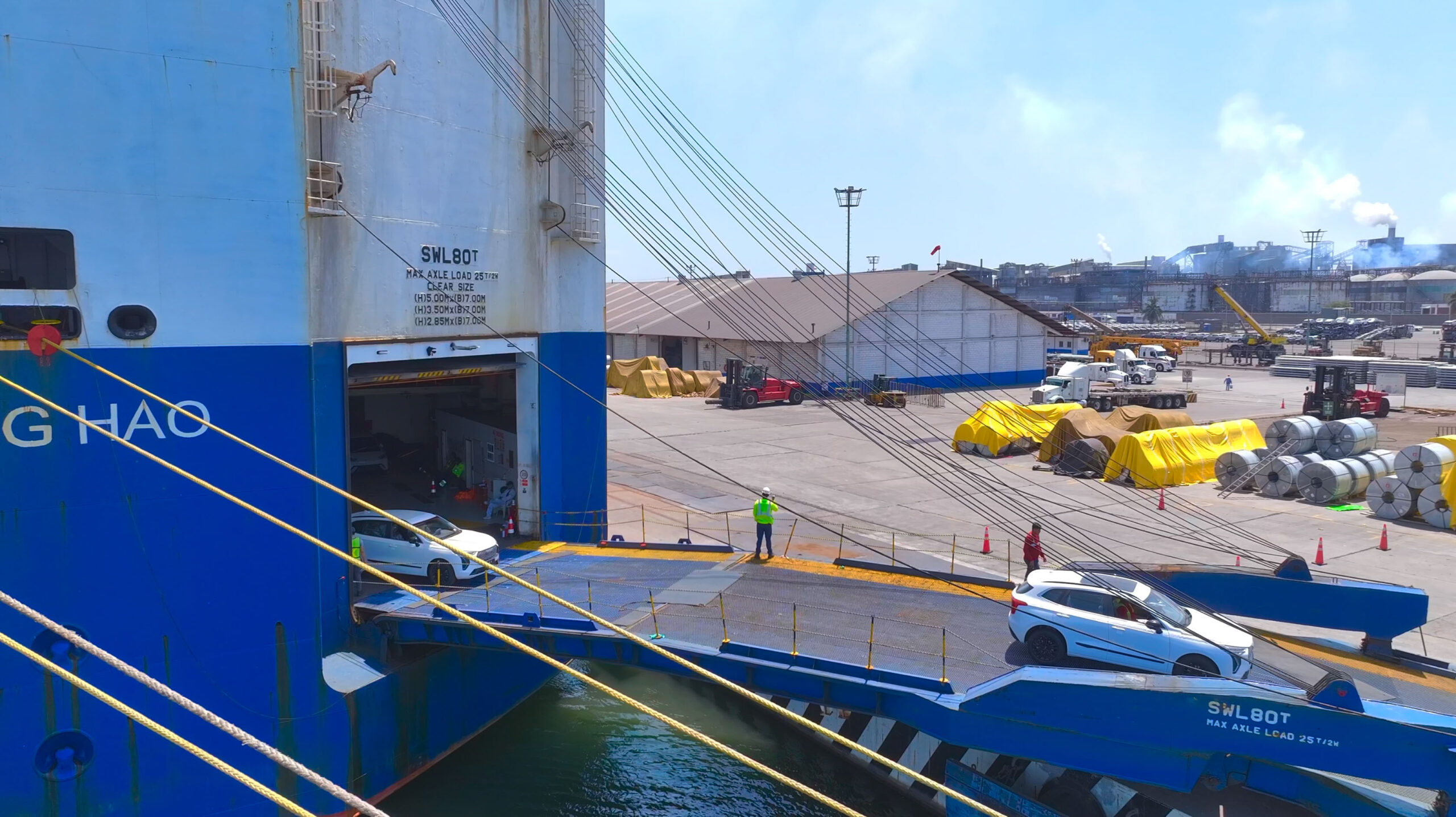 Procedente de Taicang, China, y bajo bandera panameña, el buque atracó en la Terminal de Usos Múltiples II, para realizar la descarga de 1,200 vehículos de importación, incluyendo modelos de las marcas GWM y MG, además de maquinaria y autobuses.
