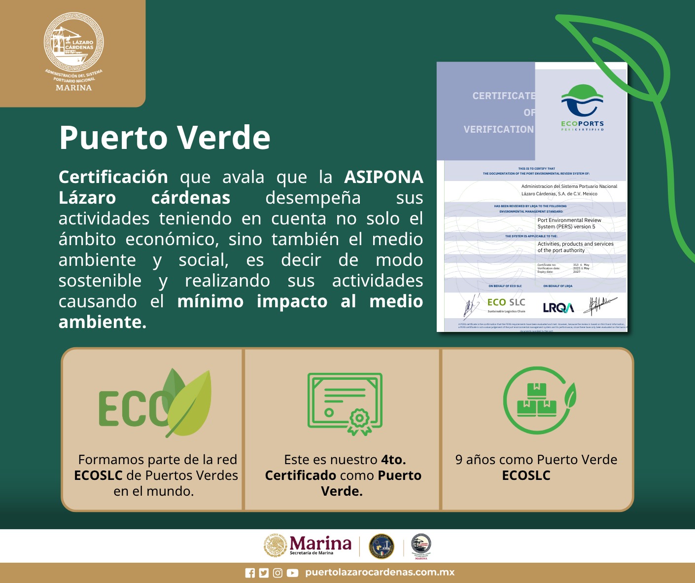Con esta certificación, el puerto reafirma su liderazgo como un modelo de operación responsable, comprometido con la eficiencia energética, la reducción de residuos y emisiones, y la conservación de los ecosistemas.