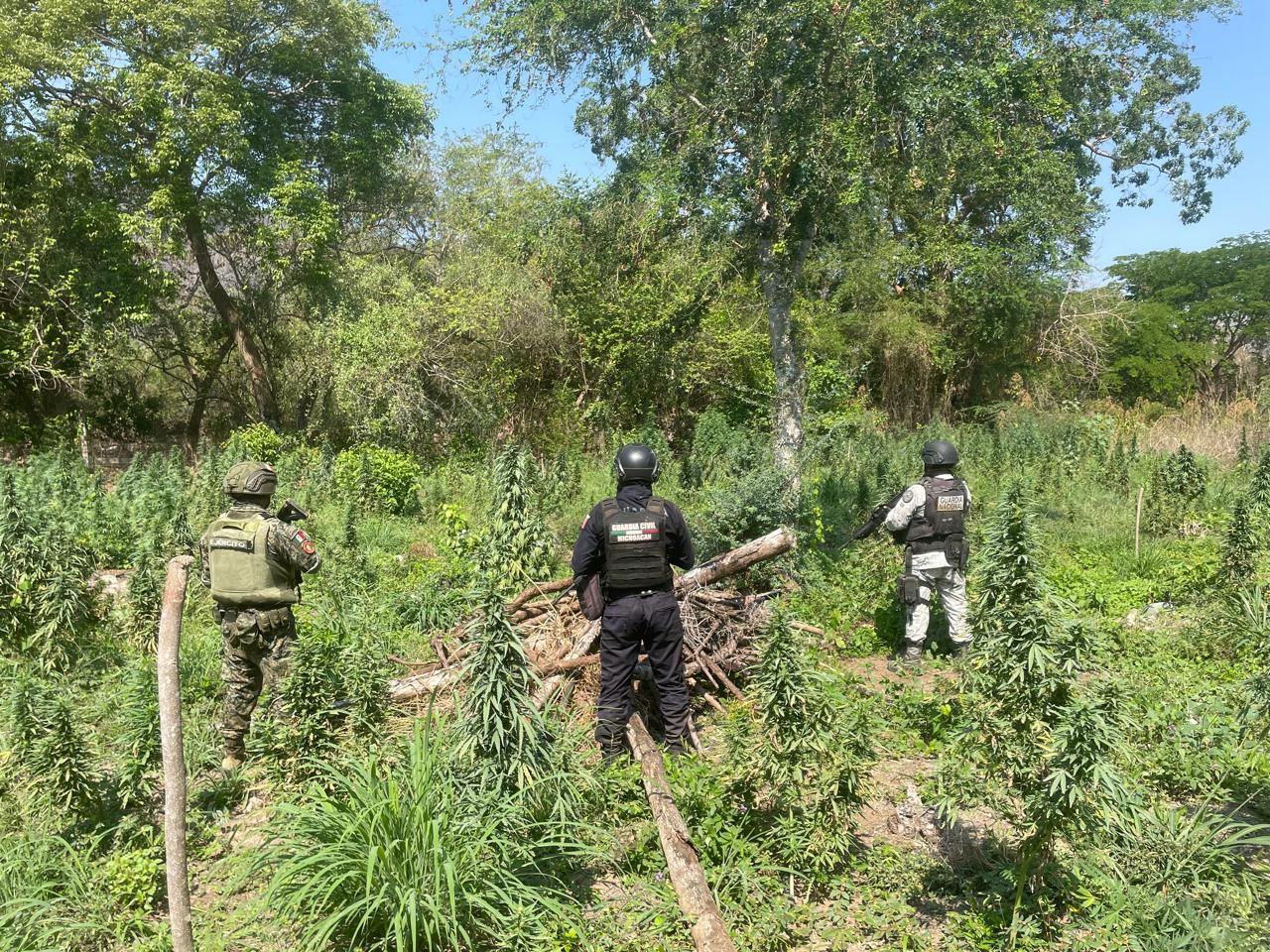 Durante el despliegue de patrullajes de vigilancia en la localidad de Palos Marías de esta demarcación, los agentes de la Guardia Civil, del Ejército Mexicano y la Guardia Nacional, visualizaron lo que aparentaba ser un sembradío de la citada droga, por lo que aseguraron la zona para inspeccionarla.