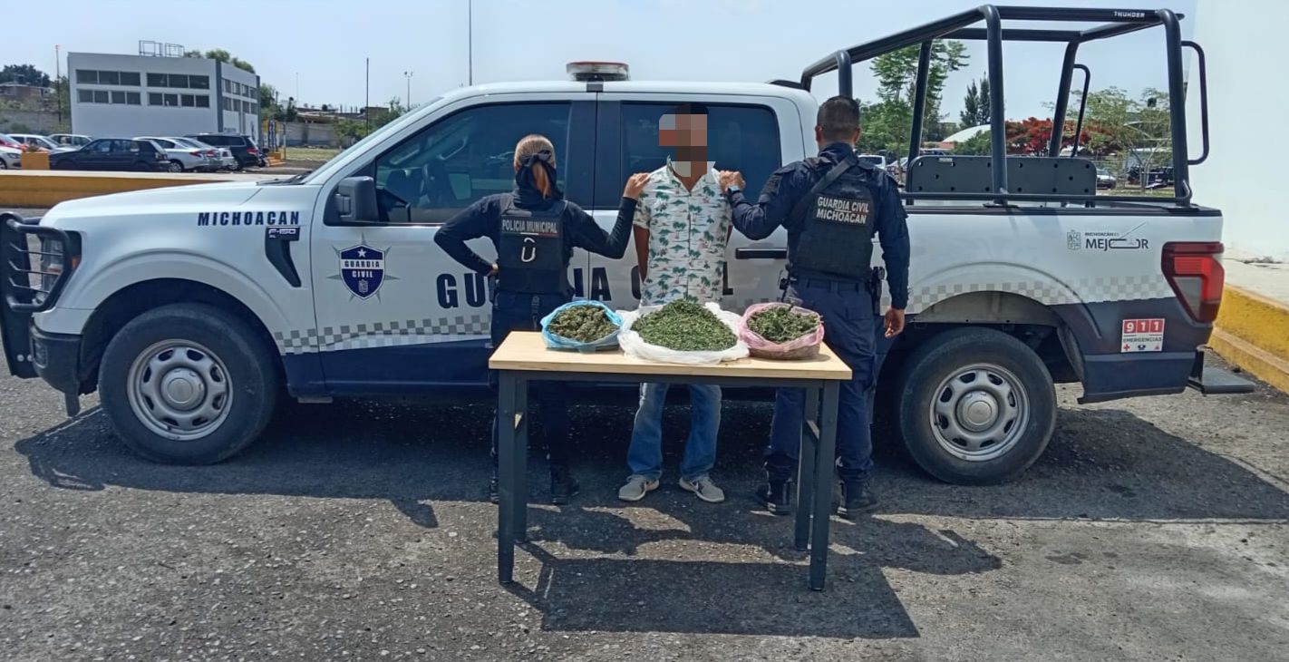 Zamora, Michoacán, 22 de mayo del 2025.- La Secretaría de Seguridad Pública (SSP) detuvo en el municipio de Zamora a un hombre en portación de 1.5 kg de marihuana, al parecer utilizada para la comercialización al menudeo.