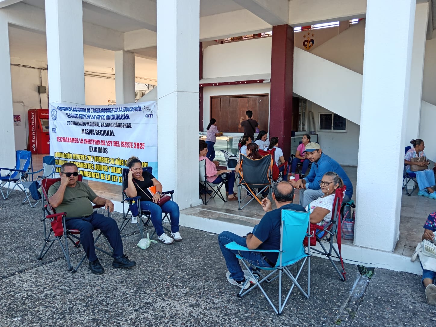 Maestras y maestros de la Coordinadora Nacional de los Trabajadores de la Educación (CNTE), Sección XVIII Michoacán Región Lázaro Cárdenas, en apoyo al paro nacional, realizaron una toma de Palacio Municipal para exigir, entre otras cosas, la abrogación de la ley del Issste del 2007.