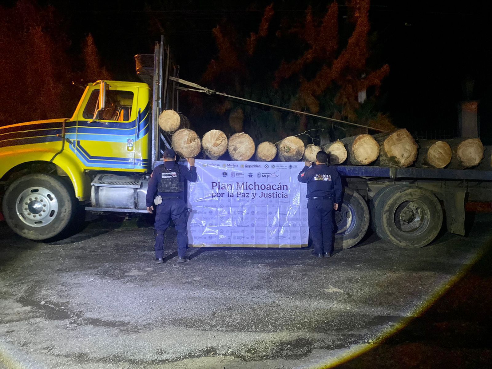 El aseguramiento fue de 13 rollos de madera de diferentes dimensiones, una camioneta de la marca Chevrolet y una más Nissan con reporte de robo, además de un camión y una grúa. El producto y los vehículos fueron puestos a disposición de las autoridades competentes.