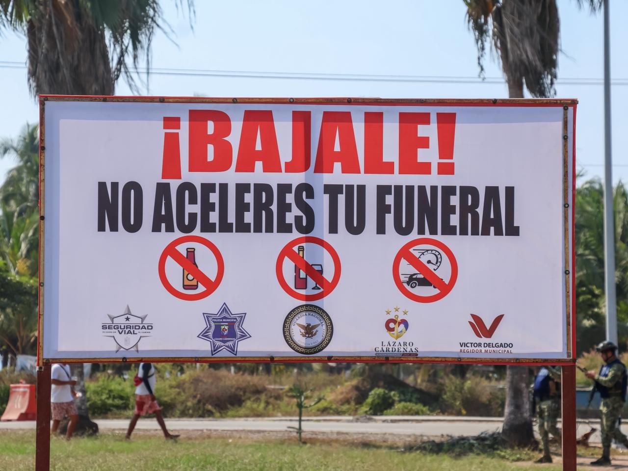 Cd. Lázaro Cárdenas Mich., a 17 de Diciembre del 2025.- Con la intención de prevenir accidentes automovilísticos causados por la alta velocidad y la imprudencia; el día de hoy el Regidor Víctor Delgado Torres, que preside la Comisión de Vialidad en el municipio, llevó a cabo la colocación del monumento “Bájale, No Aceleres tu Funeral”, el cual se exhibe en el boulevard playero durante las vacaciones de fin de año.