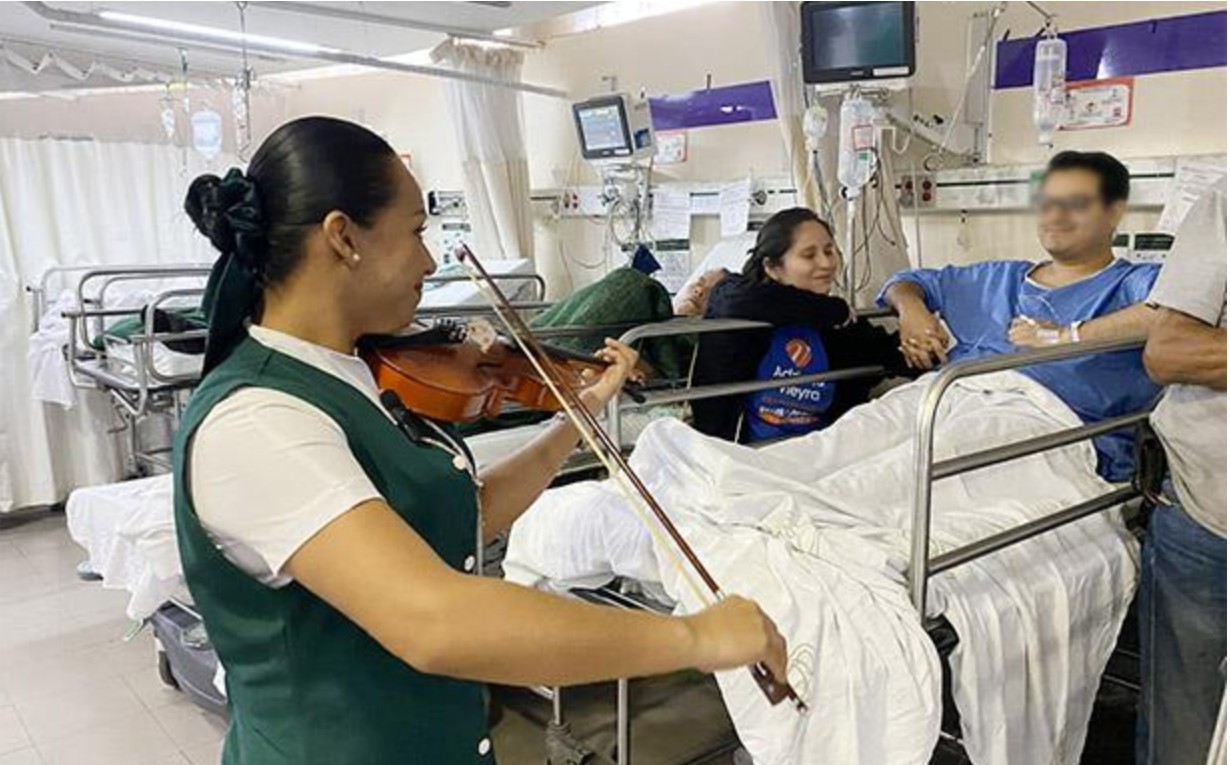 “La respuesta de las y los pacientes siempre es muy positiva al escuchar el violín, y al compartir cada nota me voy muy agradecida porque valoro mucho el hecho de tener salud”, dijo.
