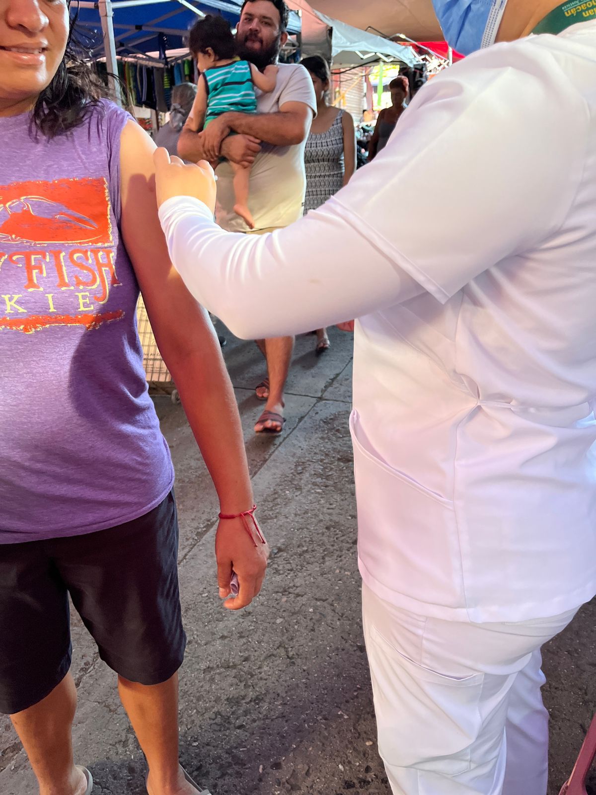 *La Unidad de Medicina Familiar No. 27 (UMF 27) del IMSS, ubicada en la zona de La Mira en Lázaro Cárdenas, Michoacán, realizó vacunación en mercados móviles en dicho lugar.
