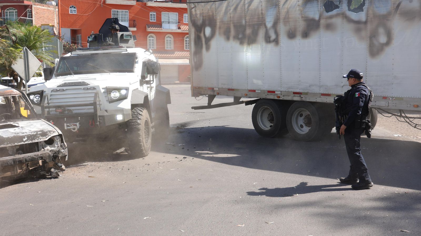 Con el apoyo de vehículos tácticos blindados, entre ellos la unidad Karnaf y Sandcat, la Guardia Civil ha intervenido directamente para retirar los bloqueos registrados en distintos tramos carreteros del estado.